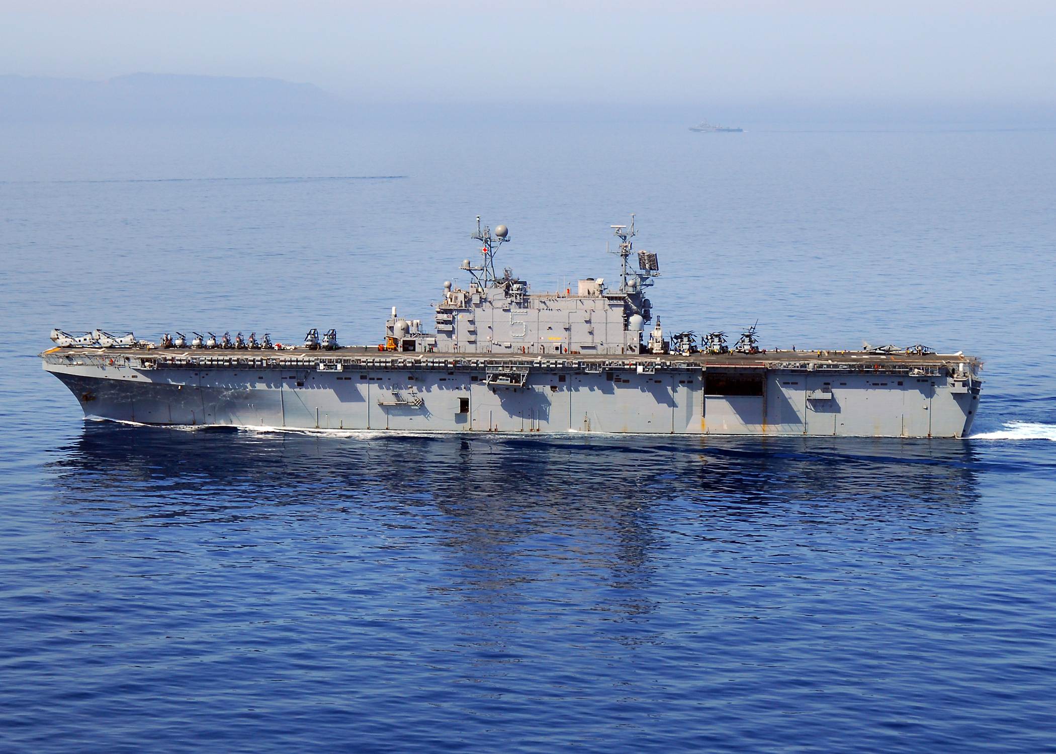 2456k | USS Peleliu (LHA-5) conducts operations in the Red Sea, 27 August 2008. Peleliu is deployed supporting maritime security operations in the U.S. 5th Fleet area of responsibility. US Navy photo # 080827-N-2183K-122 RED SEA (Aug. 27, 2008) by MC2 Dustin L. Kelling. |