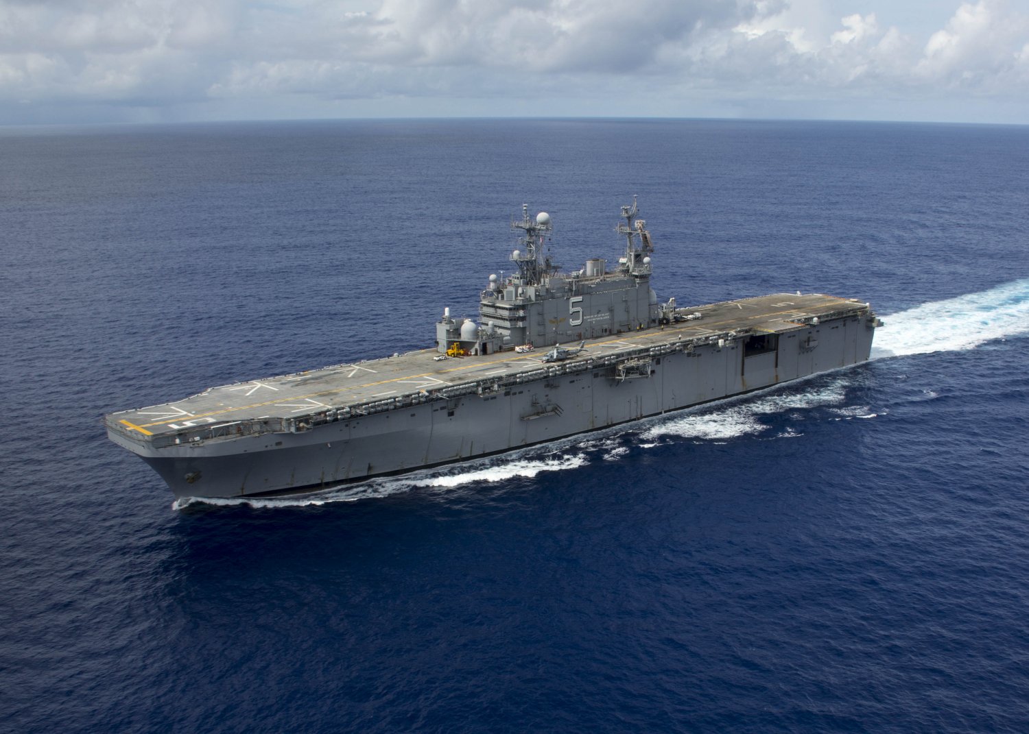 265k | USS Peleliu (LHA-5) transits the U.S. 7th Fleet area of responsibility. Peleliu is scheduled for deployment to the western Pacific Ocean after successfully completing Rim of the Pacific (RIMPAC) Exercise 2014, in and around the Hawaiian Islands. US Navy photo # 140812-N-EH218-052 PACIFIC OCEAN (Aug. 12, 2014) by MC3 Ryan J. Batchelder. |