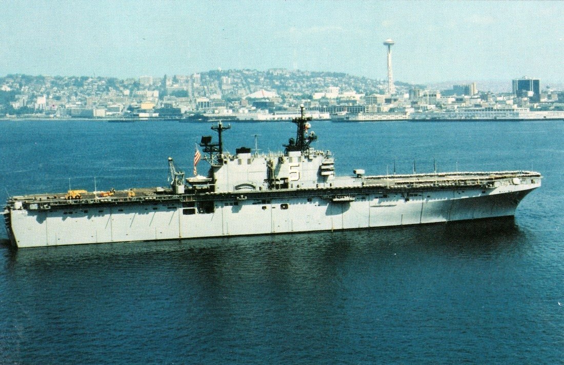 198k | USS Peleliu (LHA-5) underway in the harbor at Seattle, WA. date unknown. | Nicholas Tiberio | |