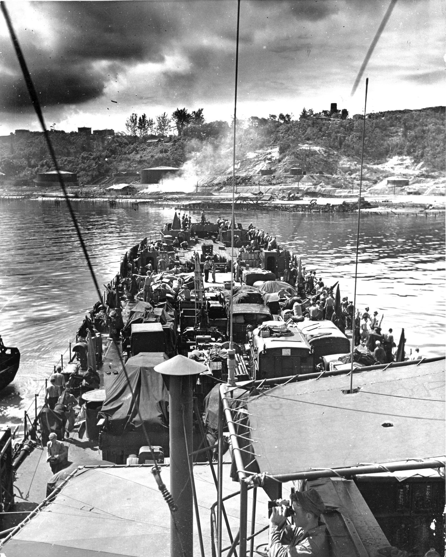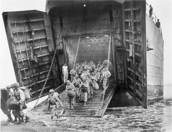 680k | USS LST-66 landing at Balikpapan, Borneo in July 1945.