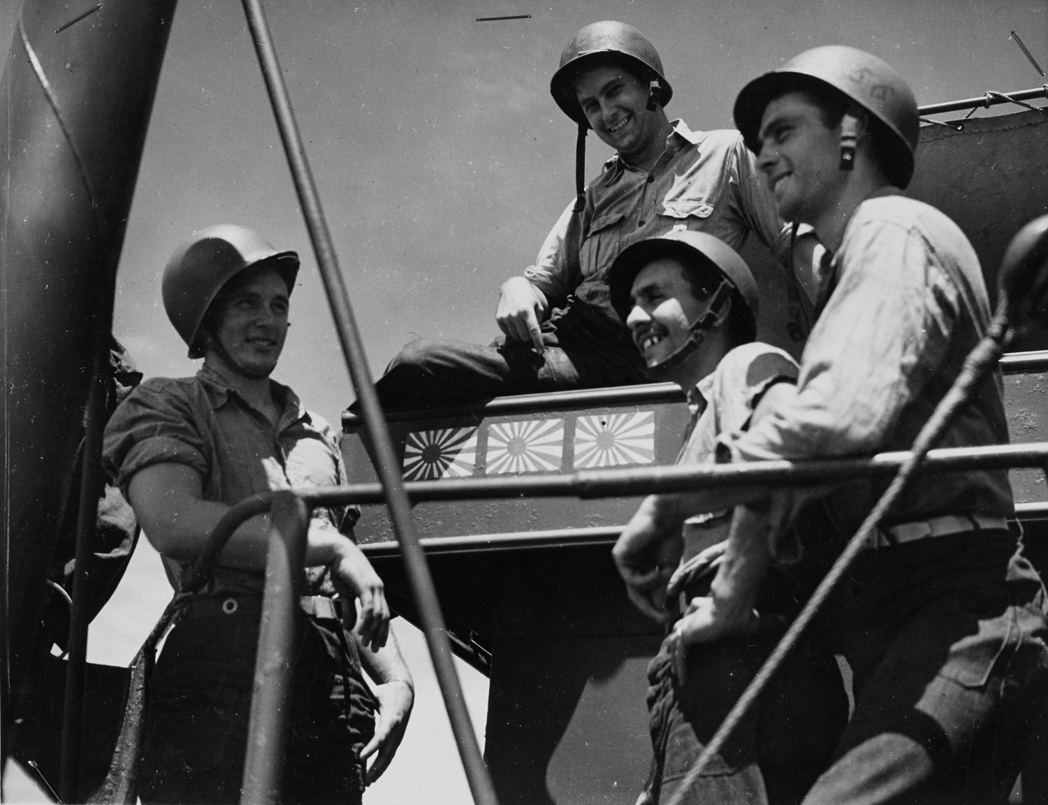 from a previous invasion in the South Pacific. The three Japanese flags painted on the bulkhead, testify to three enemy planes shot down by the LST-66's