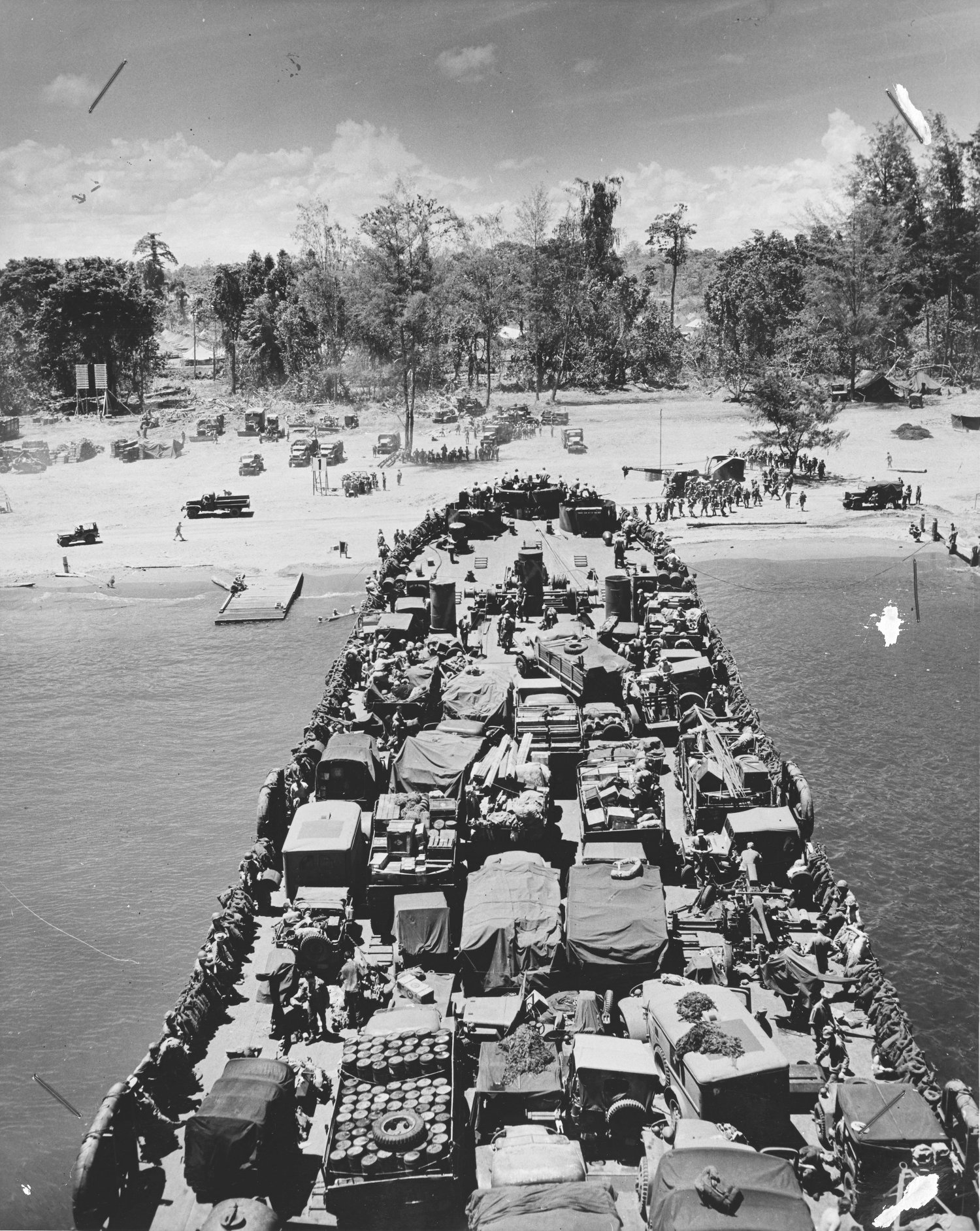 125k | Cape Gloucester Invasion, December 1943. Loading LSTs at Oro Bay, New Guinea, on December 24, 1943, in preparation for the Cape Gloucester