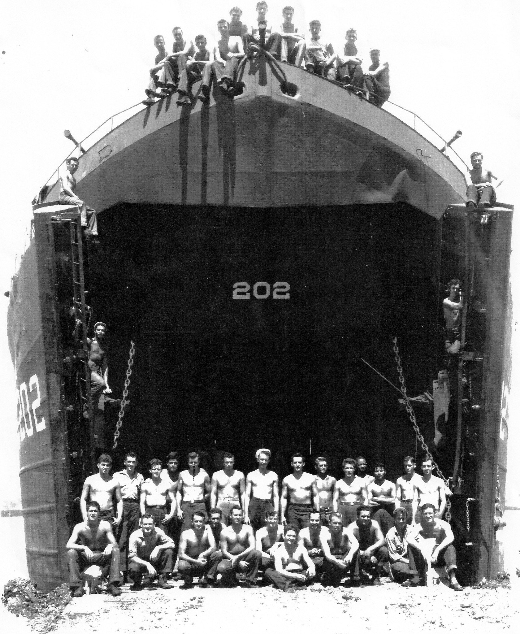 833k | USS LST-202 enlisted crew members, date and location unknown. | John Sisneros for his grandfather Celso Baca S1/c USCGR USS LST-202 | |