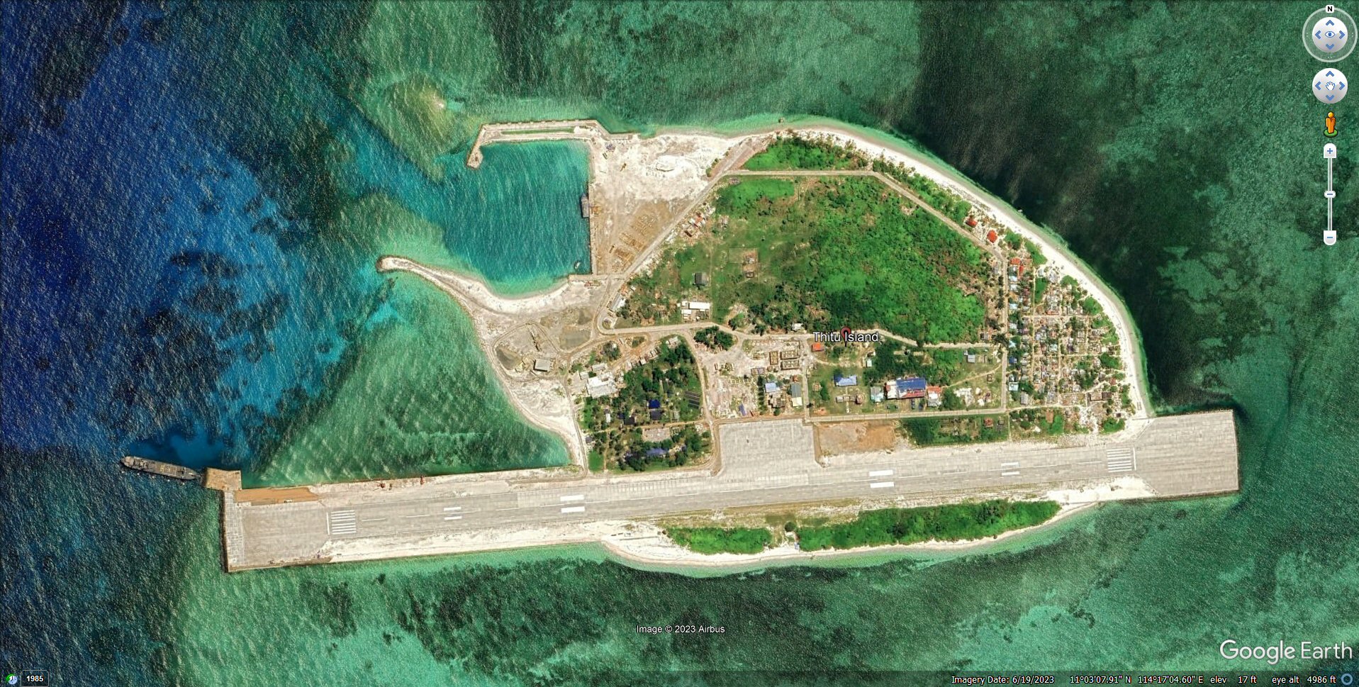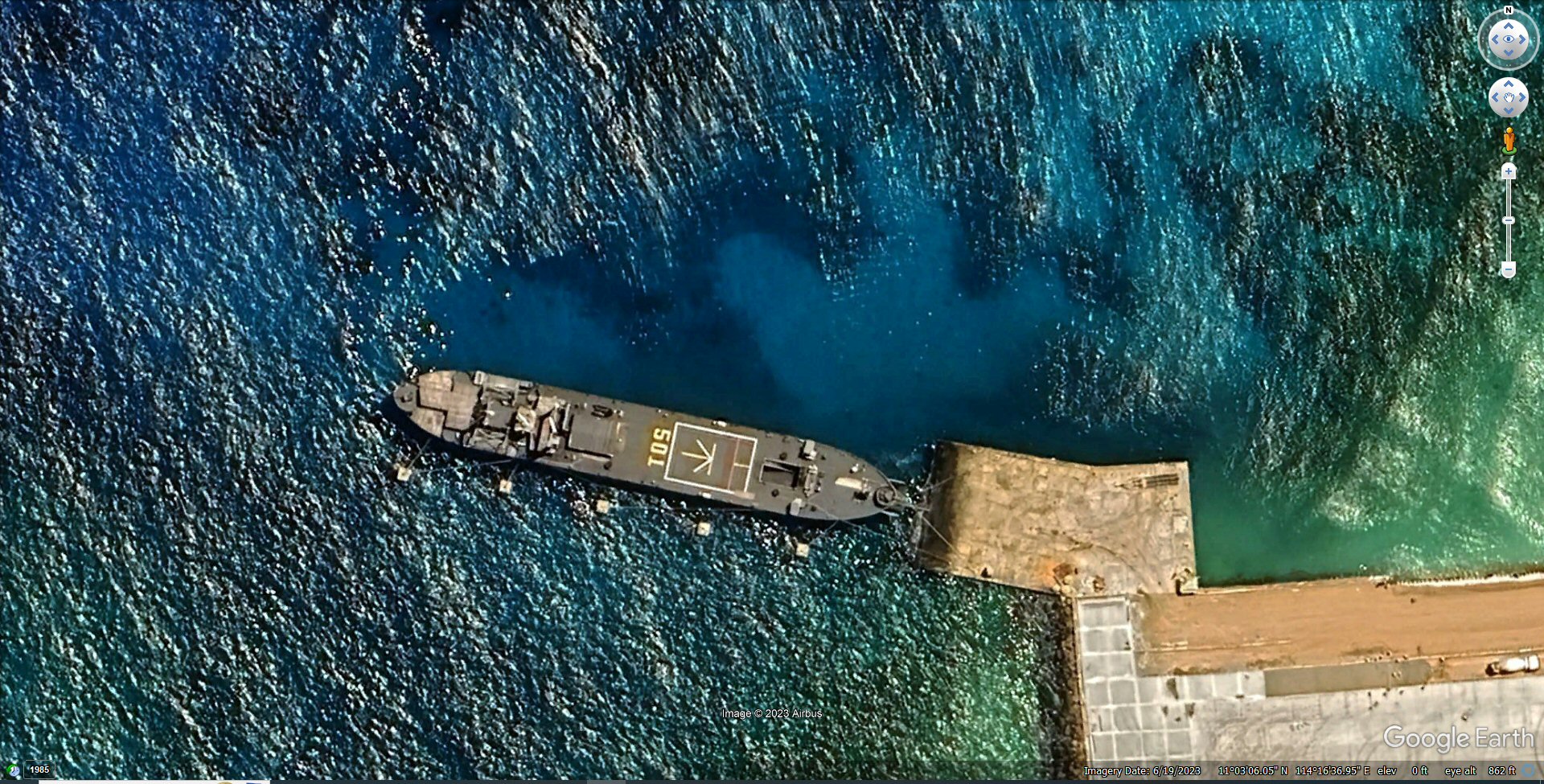 627k | BRP Laguna (LT-501) moored at Pag-Asa Island, 19 June 2023, in the Spratleys during a resupply mission in support of the Philippine troops stationed