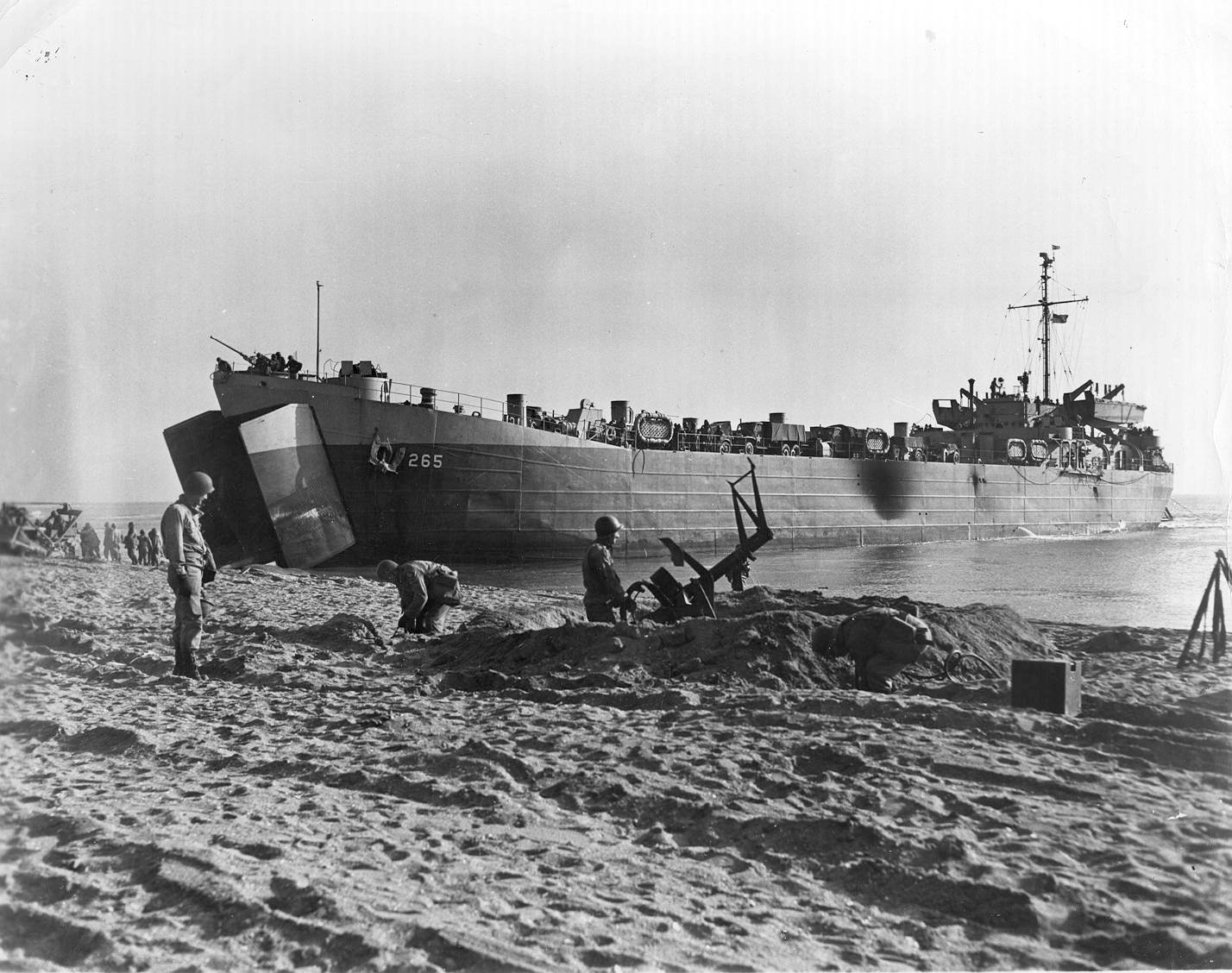 291k | USS LST-265 beached during training maneuvers at Cove Point, MD., near US Naval Amphibious Training Base Solomons, MD, circa January 9-15, 1944. | Steve Benoist for his grandfather Emile Charles Benoist QM USS LST-379 | |