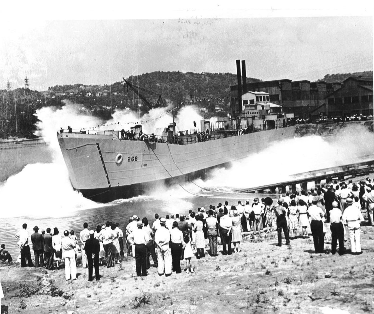332k | USS LST-268 launching , 18 June 1943, at American Bridge Co., Ambridge, PA. | Darin Goodman in honor of his father John W. Goodman USS LST-268 | |
