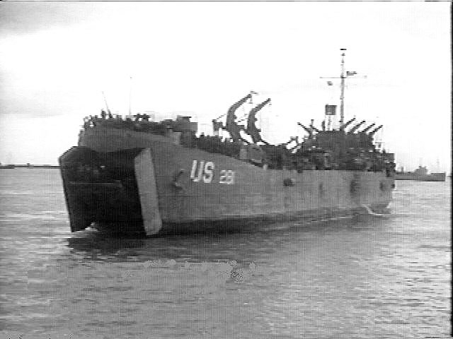50k | USS LST-281 at anchor off the coast of Normandy, June 1944. US National Archives image |
