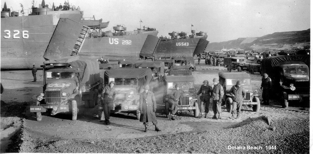 185k | USS LST-326, USS LST-292 and USS LST-543 on Omaha Beach, Normandy, circa 1944. Photo by Ceylon Dearborn EM1/c USS LST-982 |