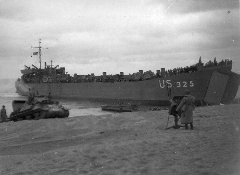 84k | USS LST-325 unloading vehicles at Salerno, Italy, circa September 1943. | Gerd Matthes | |