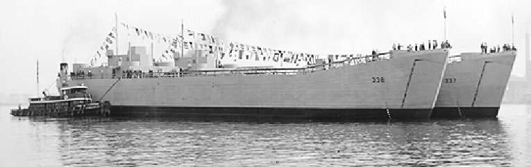 39k | LST-338 and LST-337 soon after launch at Norfolk Navy Yard, Portsmouth VA. US Navy photo. |