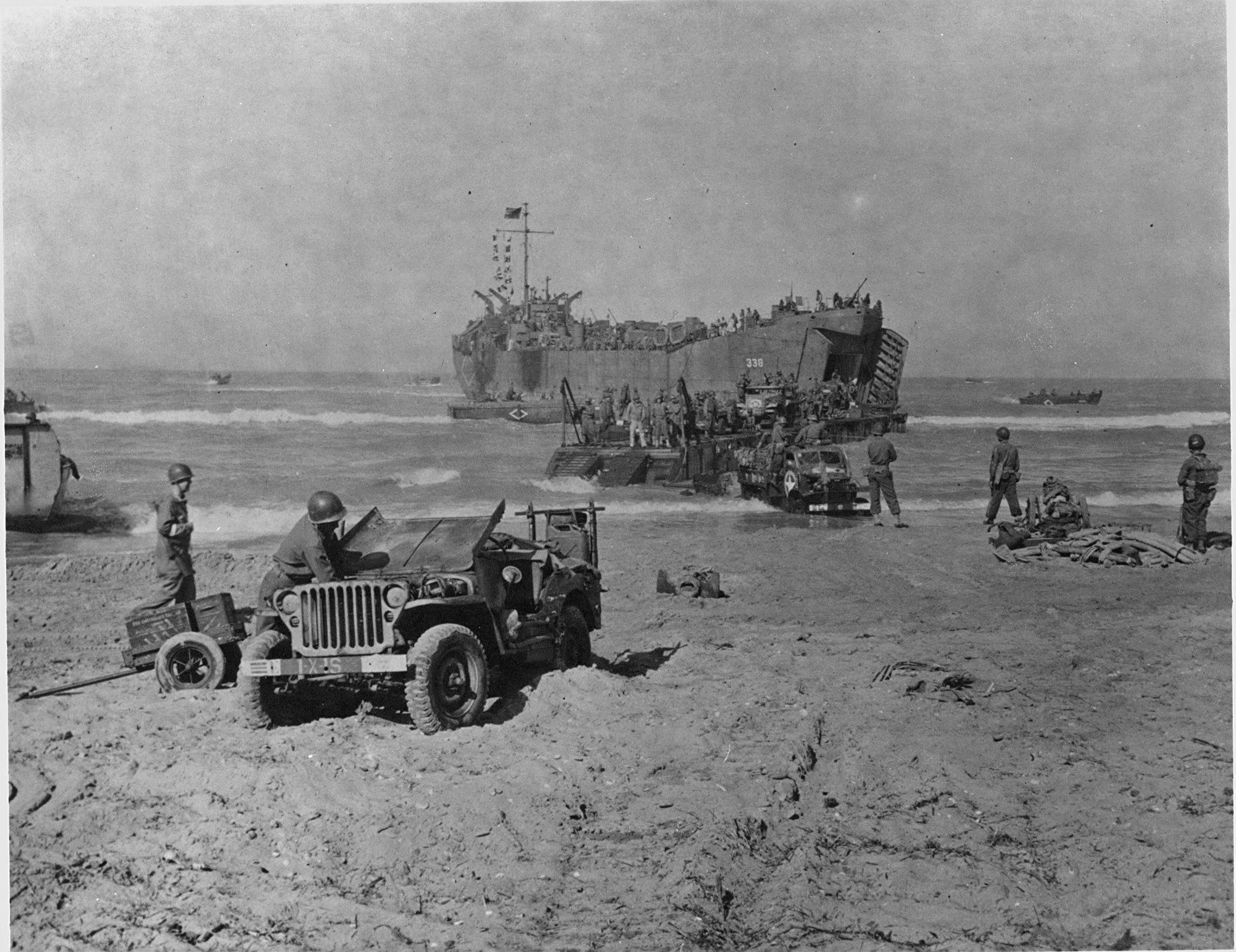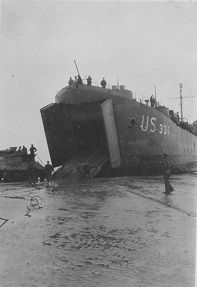 43k | USS LST-338 unloading at the Normandy beachhead in June 1944