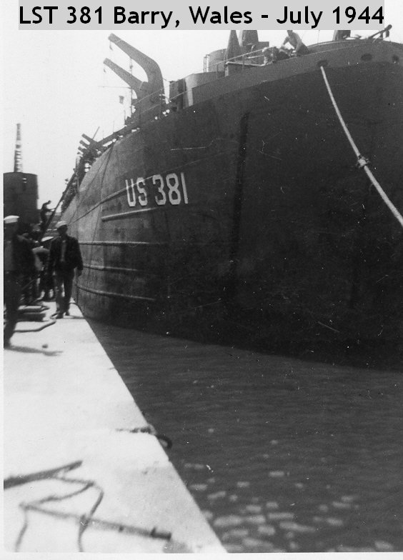 70k | USS LST-381 moored pierside, Barry, Wales, UK, July 1944. | Rick Thorn for his father Charles Henry Thorn USS LST-381 | |