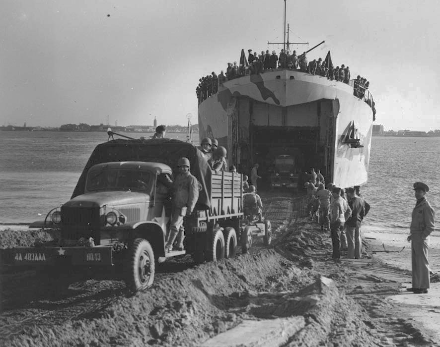 136k | USS LST-486 loading an Army truck during Acorn Training, San Diego, CA., 9 January 1944. US National Archives photo # 80-G-224489 from the US Navy photo collection at NARA II, College Park, MD. |