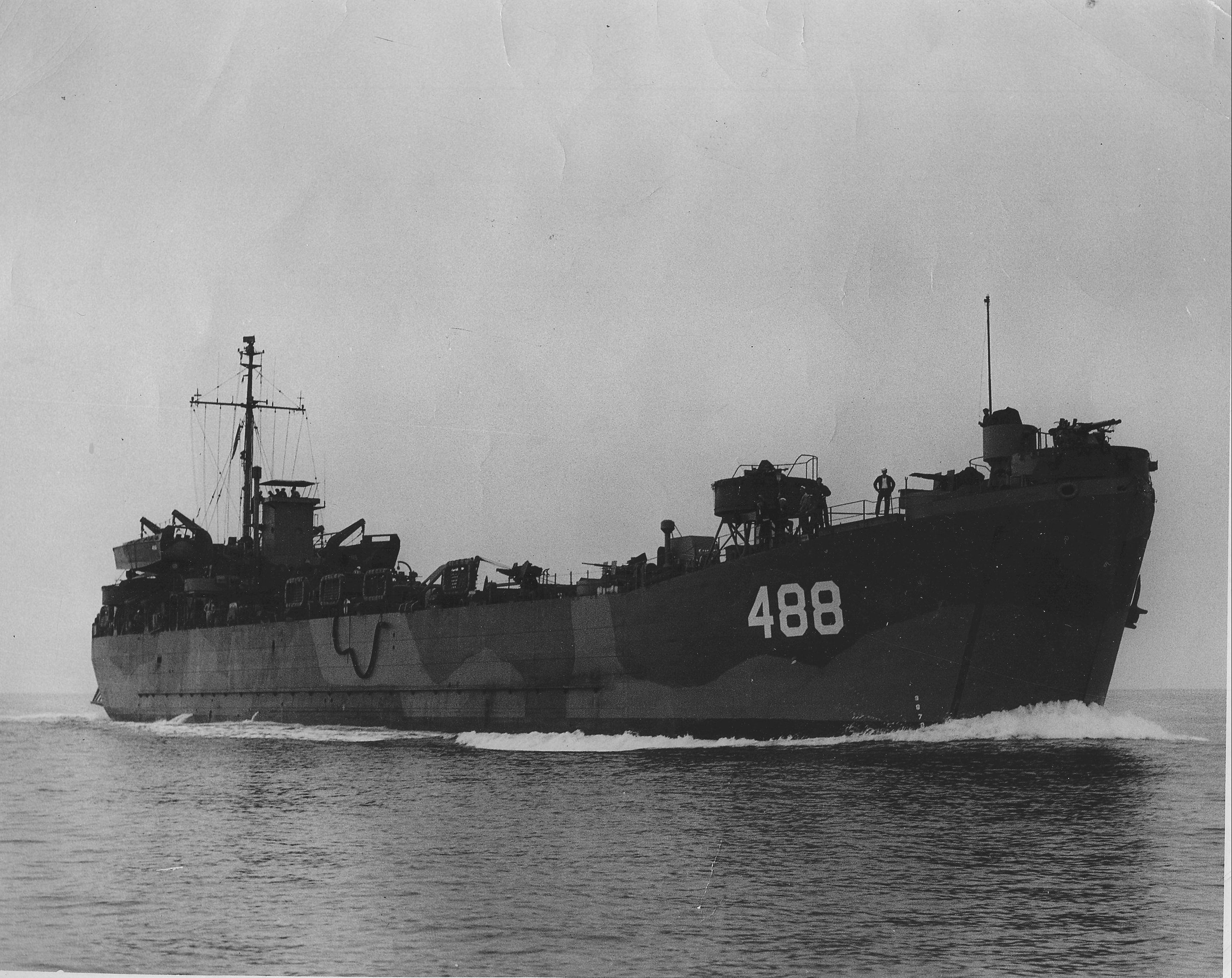 1173k | USS LST-488 under way, date and location unknown. | Marvin D Shumway USS LST-488 | |