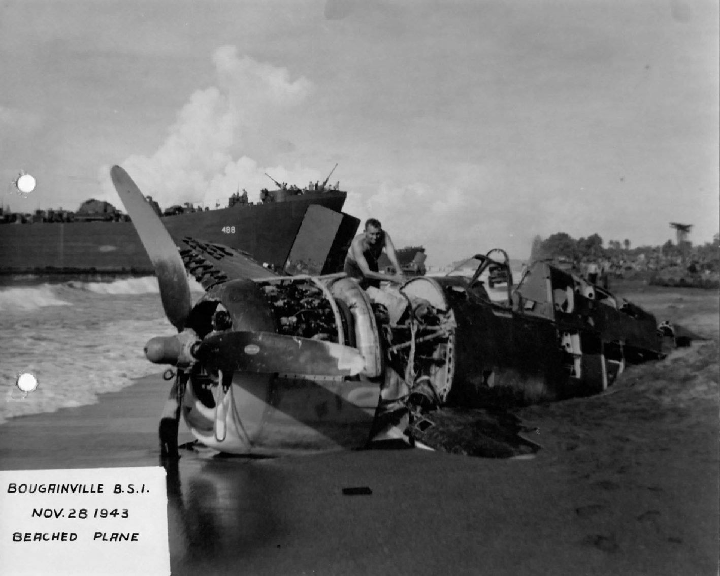 154k | USS LST-488 beached at Bougainville, British Solomon Island, 28 November 1943.