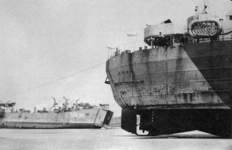 260k | USS LST-505 beached at Okinawa while married to a pontoon causeway, date unknown. | Raymond Cvetovich, Ph.D. | |