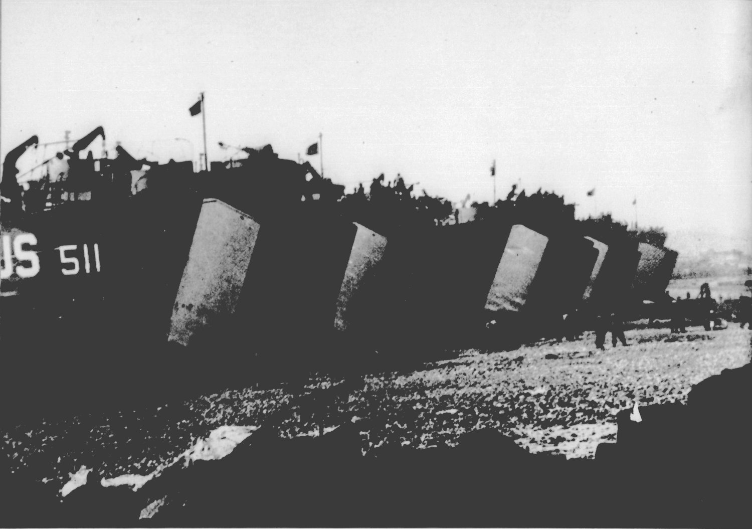 163k | USS LST-511 on the beaches at along with other LSTs at on the beaches of Le Havre, France 1944.