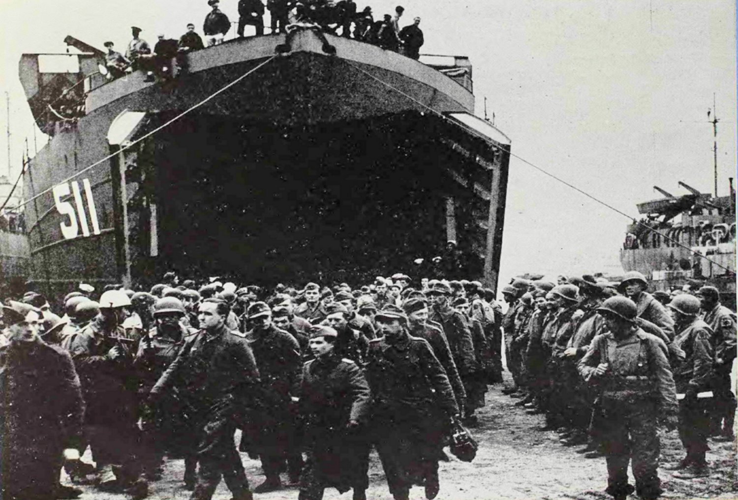 282k | USS LST-511 offloading German POWs at a British port in 1944.