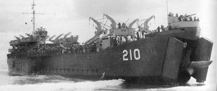 61k | Ex-USS LST-574 in Republic of China naval service as ROCS Chung Yung (LST-210) beached, date and location unknown. US Navy photo |
