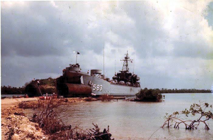 185k | USS Churchill County (LST 583) beached at Turbo, Columbia in 1964. Drums contains a chemical defoliant. | Francis Hilliker | |