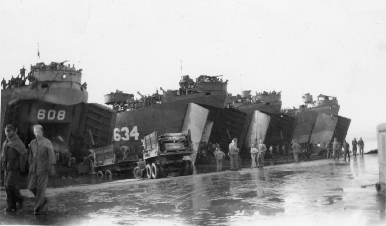 112k | USS LST-612, USS LST-608 and USS LST-1006 beached at