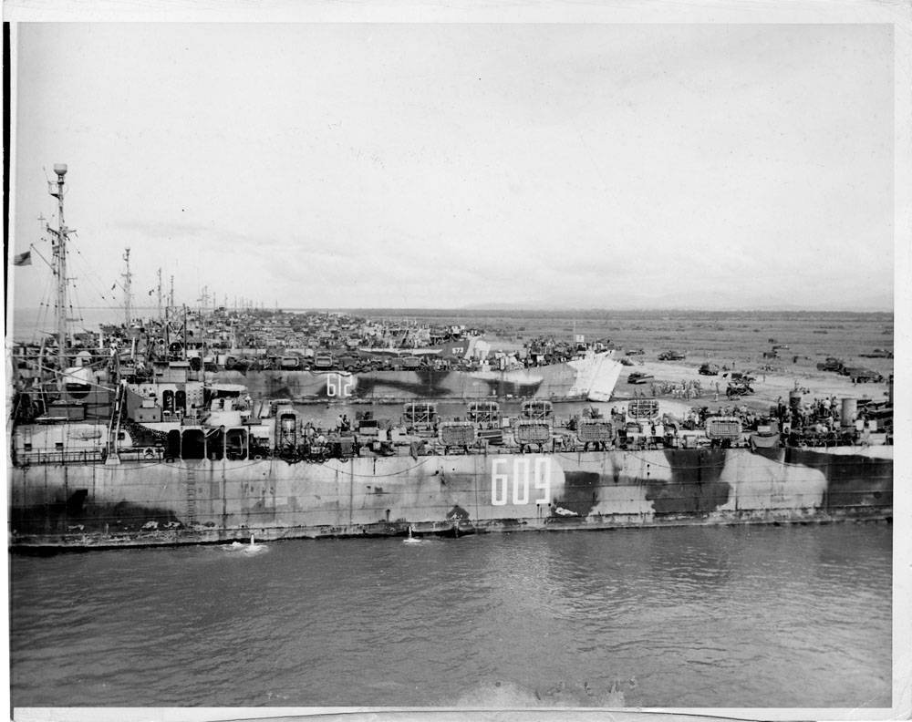 150k | USS LST-609 and USS LST-660 beached in the Philippines, date and location unknown. | Photo by Richard R. Humpert USS LST-660 submitted by Matt Schneider by his grandfather Richard R. Humpert |