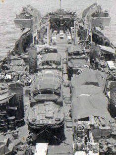 Craft Tank LCT(Mark VI) loaded on her main deck. Photographed by a lighter than aircraft from ZP-22, based at NAS Houma, LA.