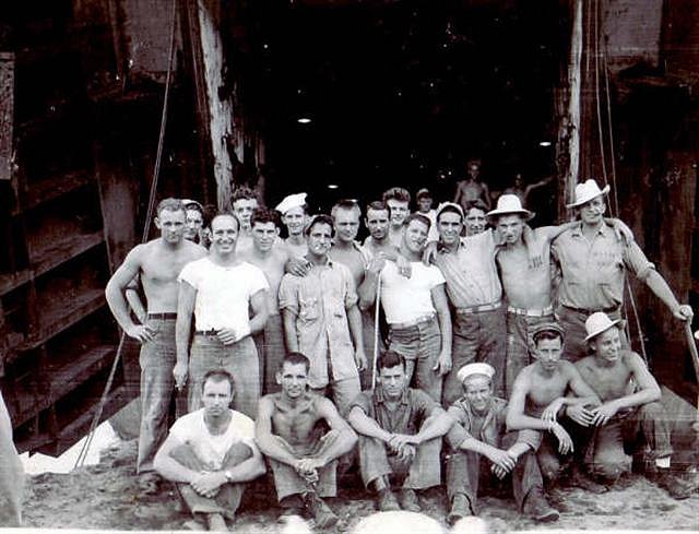 43k | USS LST-660 crew members, date and location unknown. | Photo by Richard Humpert USS LST-660, submitted by his grandson Matt Schneider | |