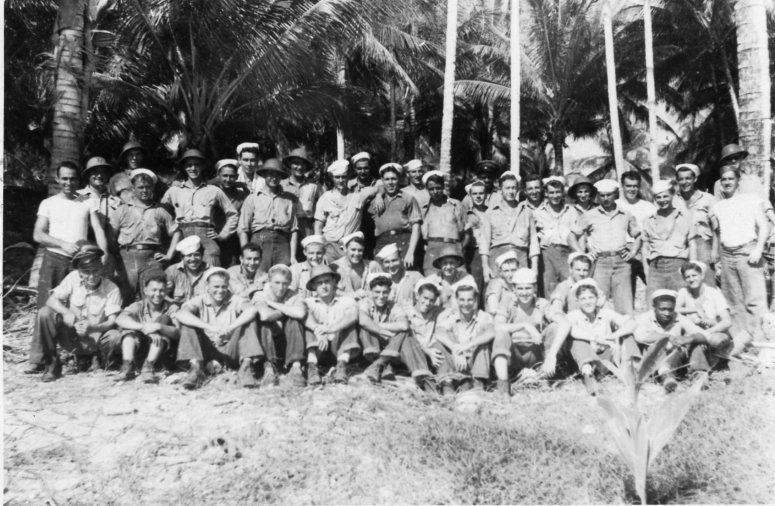 110k | USS LST-687 crew photo, R&R Christmas 1944, Manus Island. Only half the crew is shown since they had to rotate shore leave over 2 days.