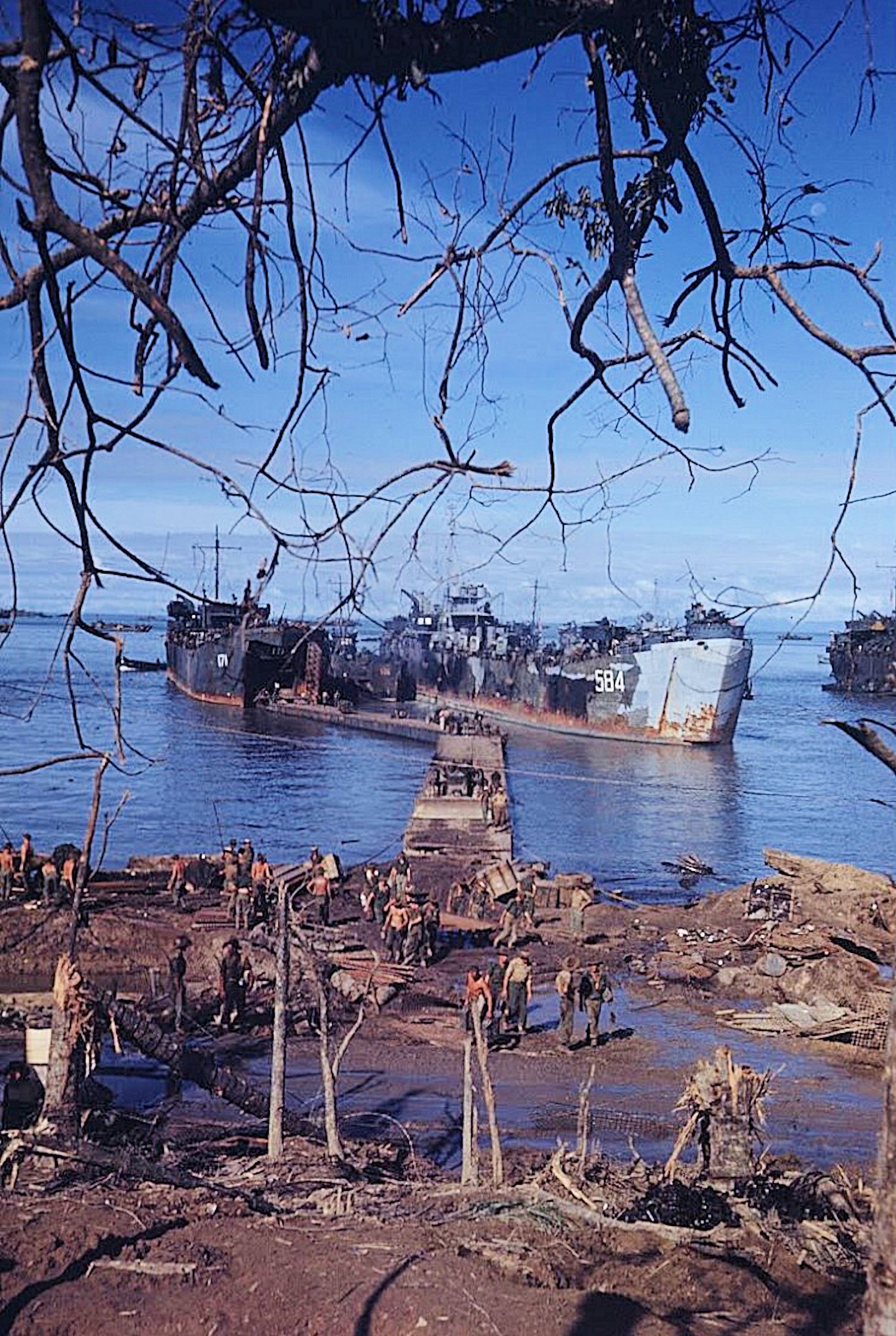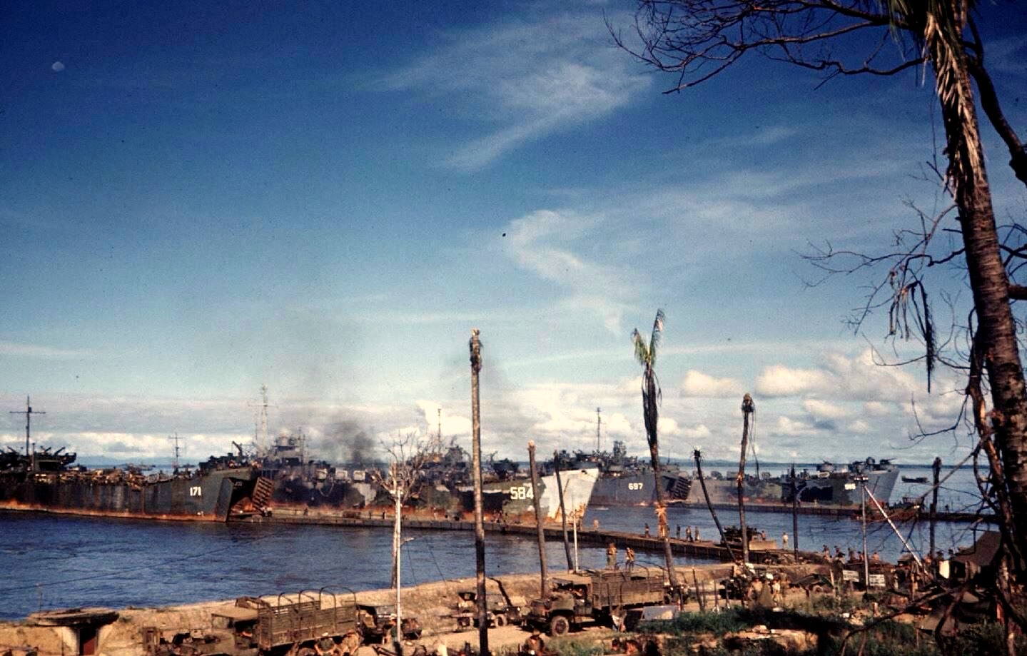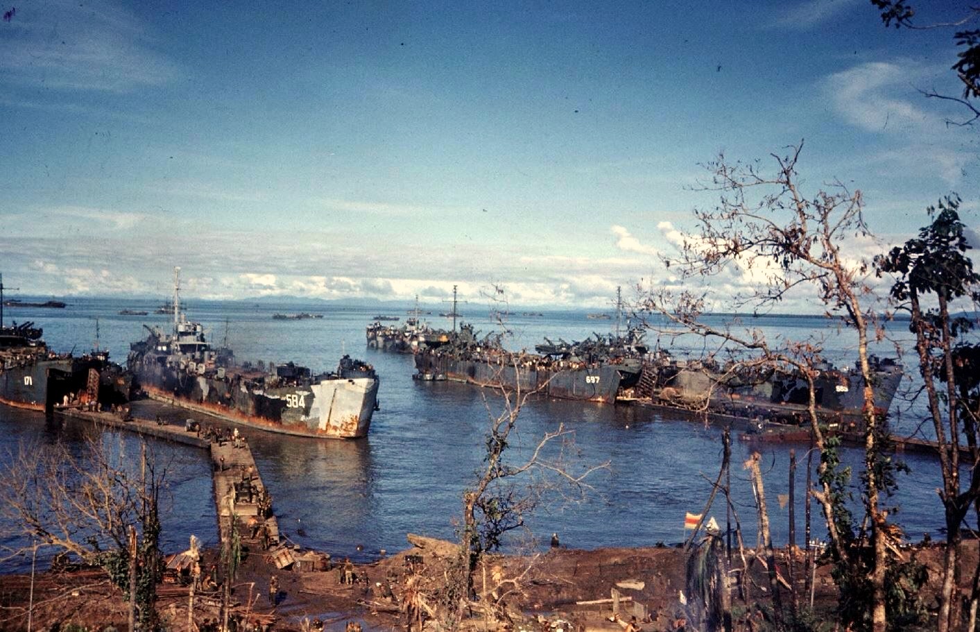 USS LST-585 loading at Morotai in April, 1945.