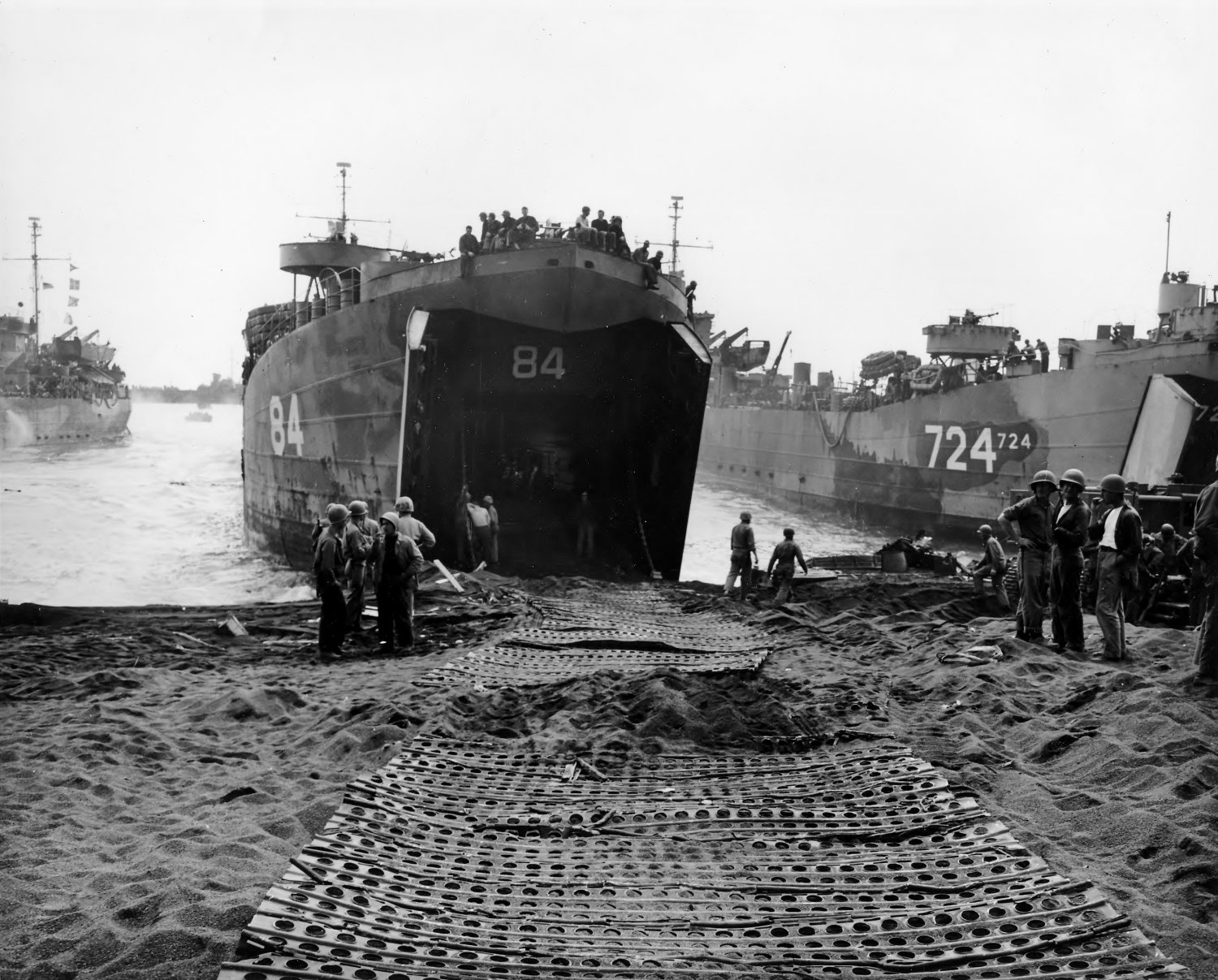 by Navy LSTs including USS LST-747, USS LST-724 and USS LST-930.