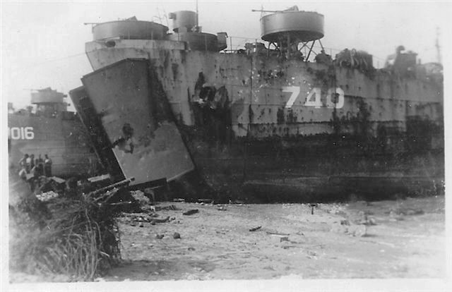 most distant LST's in upper right are USS LST-740 and USS LST-1014.