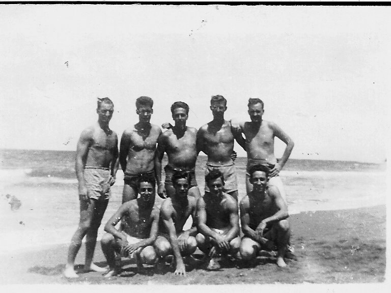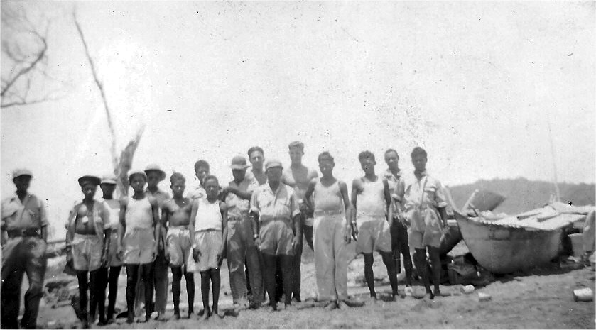 74k | USS LST-740 crew members; Halstead, Hall, Fluck, Parks, Rau, Drago, Brummer, McElcar, CicCic on the beach at Morotai, Dutch East Indies, 24 February 1945. | Clark E. Parks SM1/c USS LST-740 | |