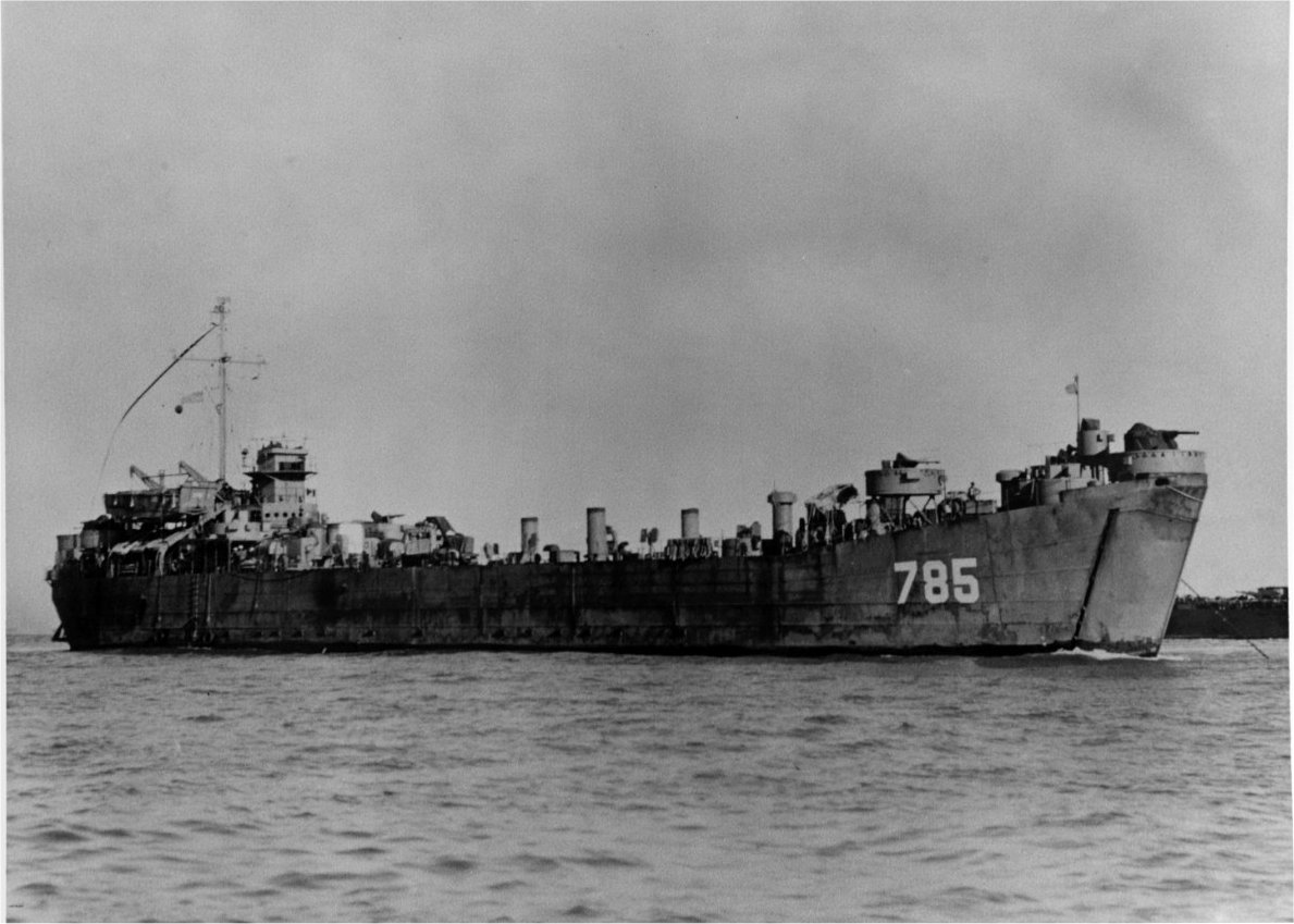 there, February 1945. USS LST-785 is in the extreme left. USS LST-713, with