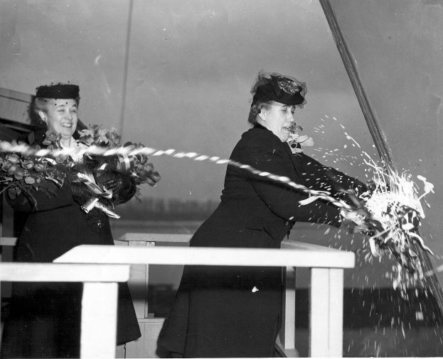 55k | Mrs. Terilo Hammond christening of LST-828 during the launching ceremony at Missouri Valley Bridge & Iron Co.,
