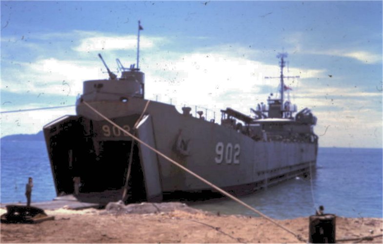 644k | USS Luzerne County (LST-902) beached at Vung Tau, Vietnam, summer 1969. | Photo by Steven Eldred SN USN USS Hickman County (LST-825) |