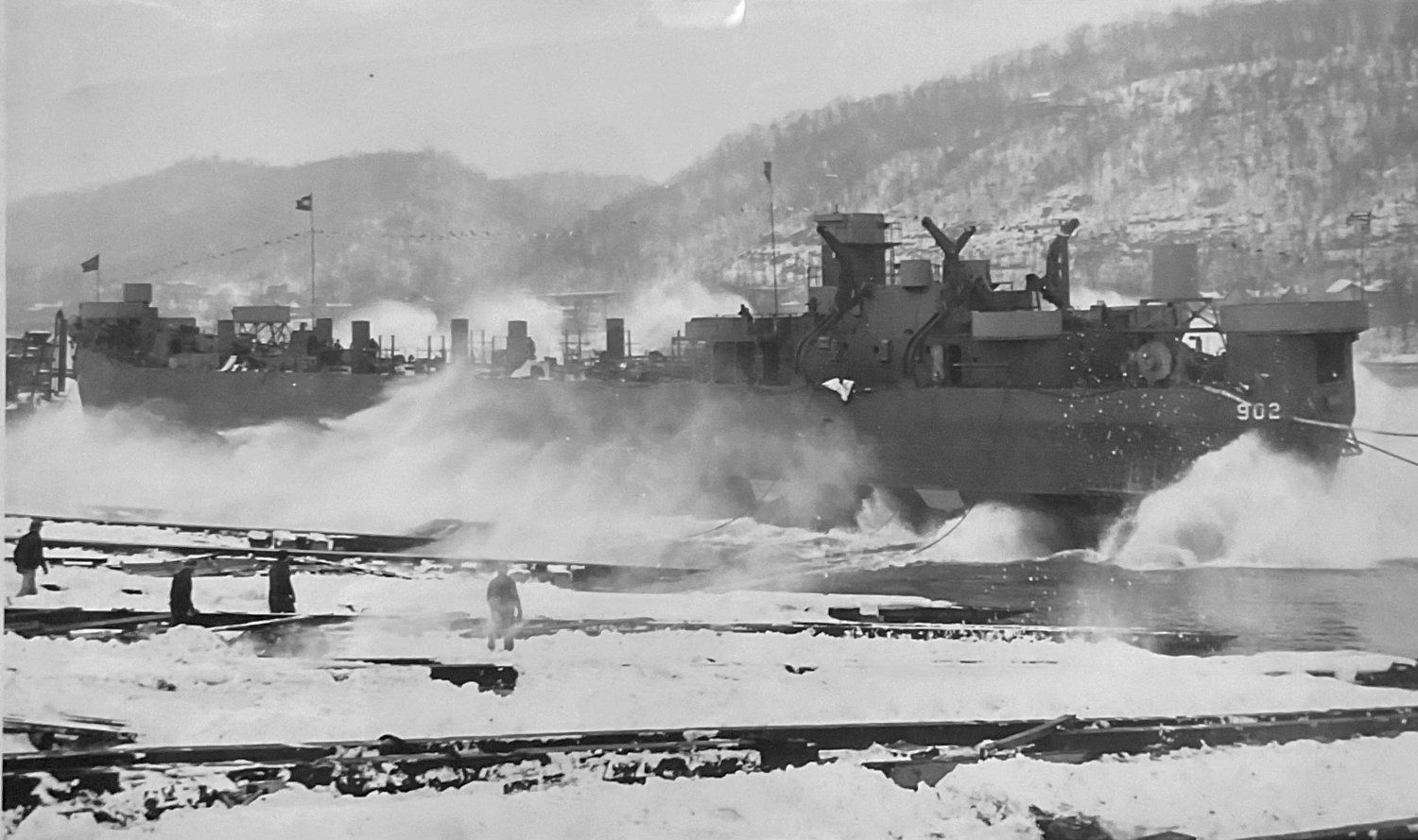195k | Launching of LST-902, 16 December 1944, at Dravo Corp., Pittsburgh, PA. | Andrew Grier | |