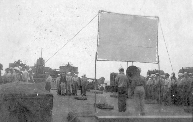 62k | USS LST-920 crew mustering on the main deck, circa 25 August to 23 November 1944 while the ship was in the European Theater ferrying supplies across the Channel to the Normandy beachhead. | John Ross for his step-father Raymond Willis SF1/c USS LST-920 | |