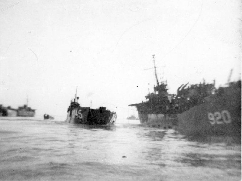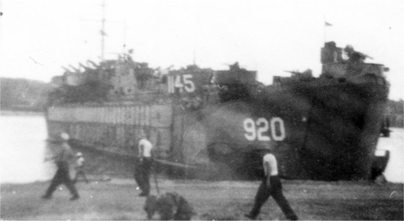 113k | USS LST-920 beached while unloading vehicles and equipment, at Okinawa, 1945. | John Ross for his step-father Raymond Willis SF1/c USS LST-920 | |