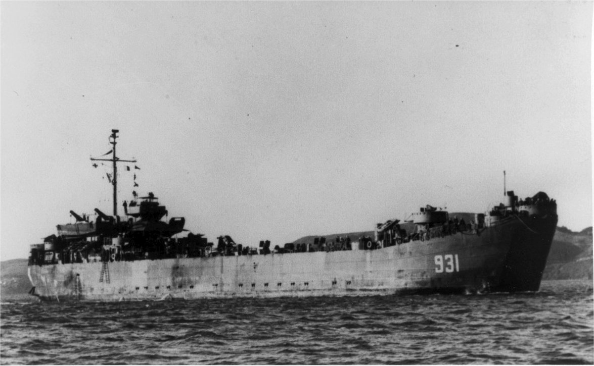 USS LST-931 moored at Okinawa in 1945.