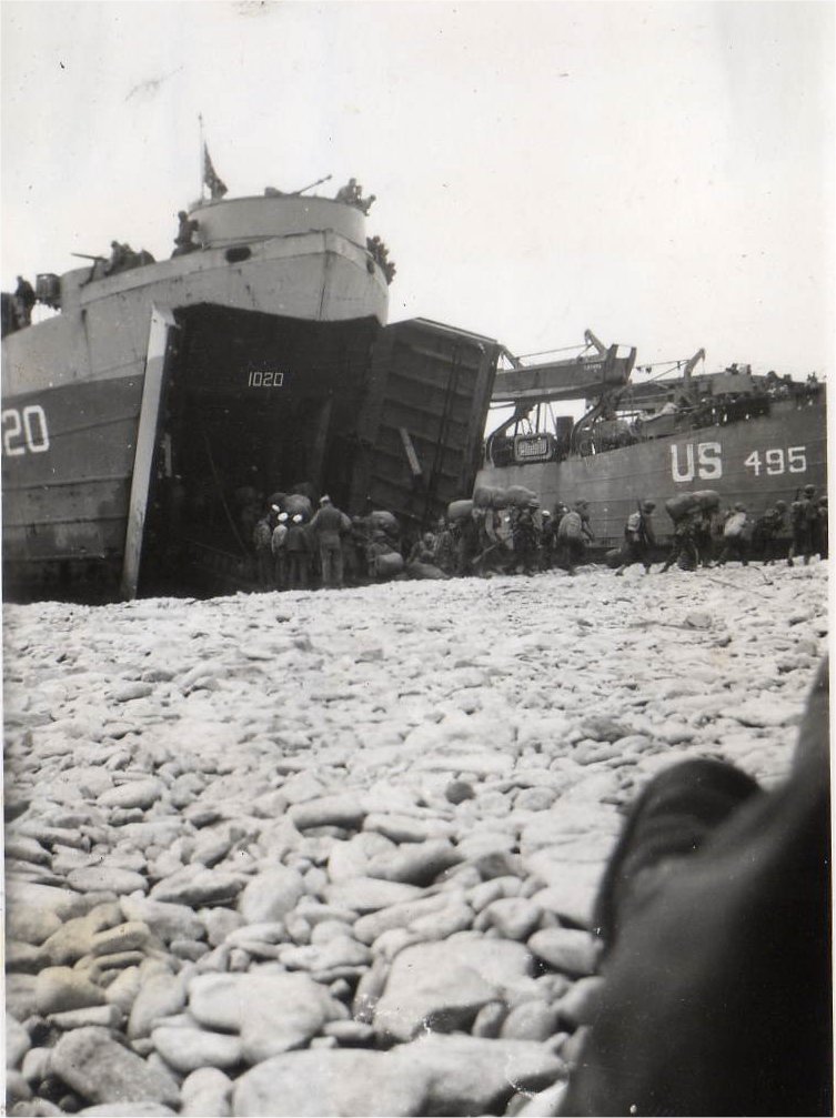 118k | USS LST-1020 and USS LST-495 beached while unloading troops and equipment during the invasion of southern France, location and date unknown. | Sue Bolen | |