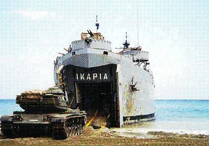 27k | Ex-Potter County (LST-1086 in Greek naval service as HS Ikaria (L-154) beached while unloading tanks, date and location unknown. | LST Home Port web site | |