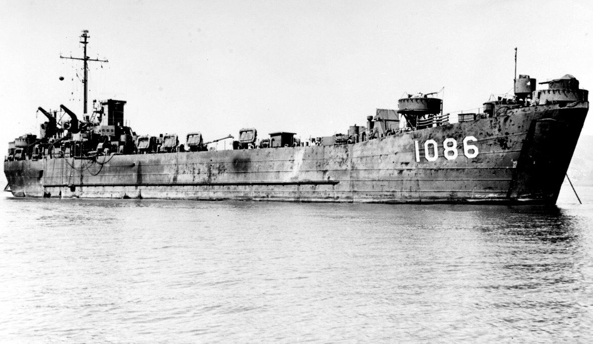 163k | USS LST-1086 at anchor, circa 1945-46, location unknown. US Naval History and Heritage Command, Photo # NH 84715 |