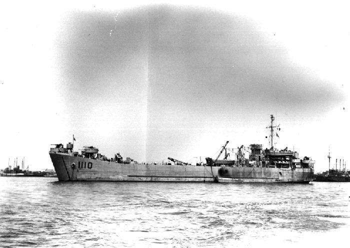 31k | USS LST-1110 underway, date and location unknown. Photo courtesy Thomas R. Lonnberg, Curator of History, Evansville Museum |