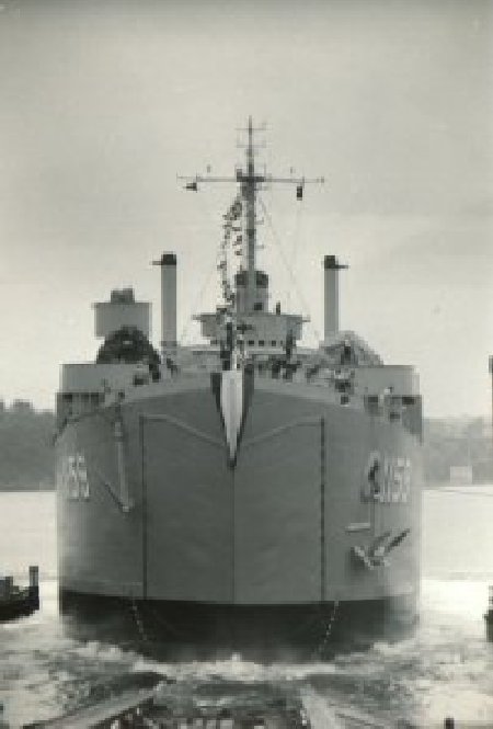 38k | Launching of LST-1159 at Bath Iron Works, Bath ME., 2 July 1953. The design of this LST class is a modification of two experimental ships constructed in the latter part of WWII | Ed Lange LST-1159 Web Site | |