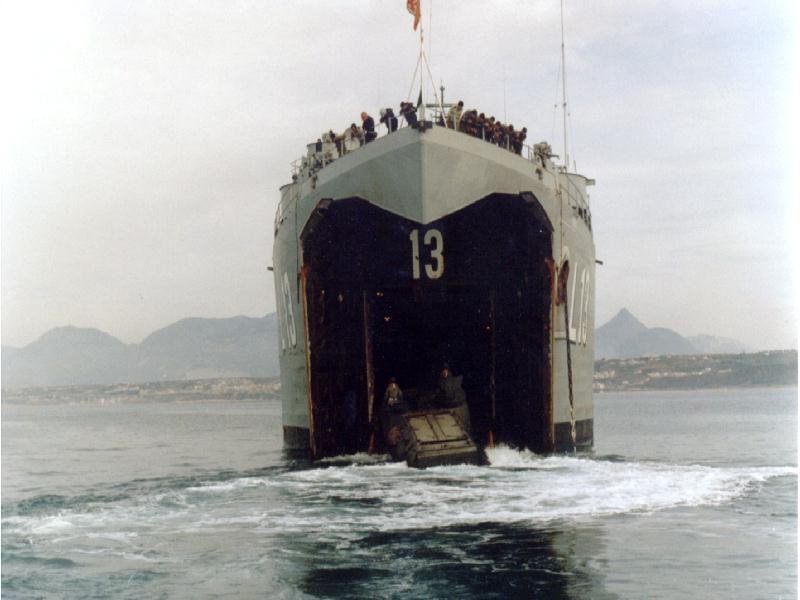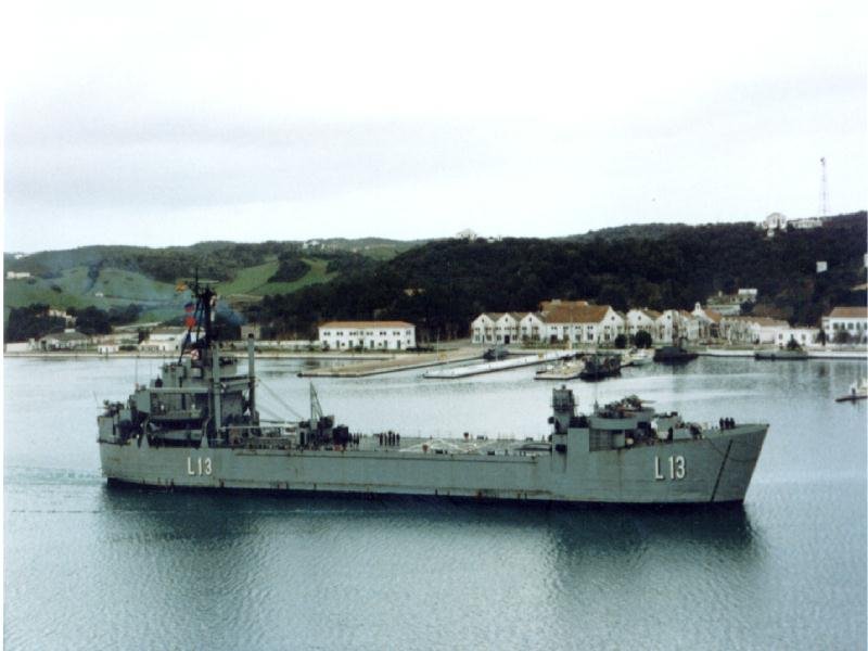 44k | Ex-USS Tom Green County (LST-1159) in Spanish naval service as Conde del Venadito (L-13) at Barcelona, Spain, 26 March 1983 | Photo by Fabio Peña | |