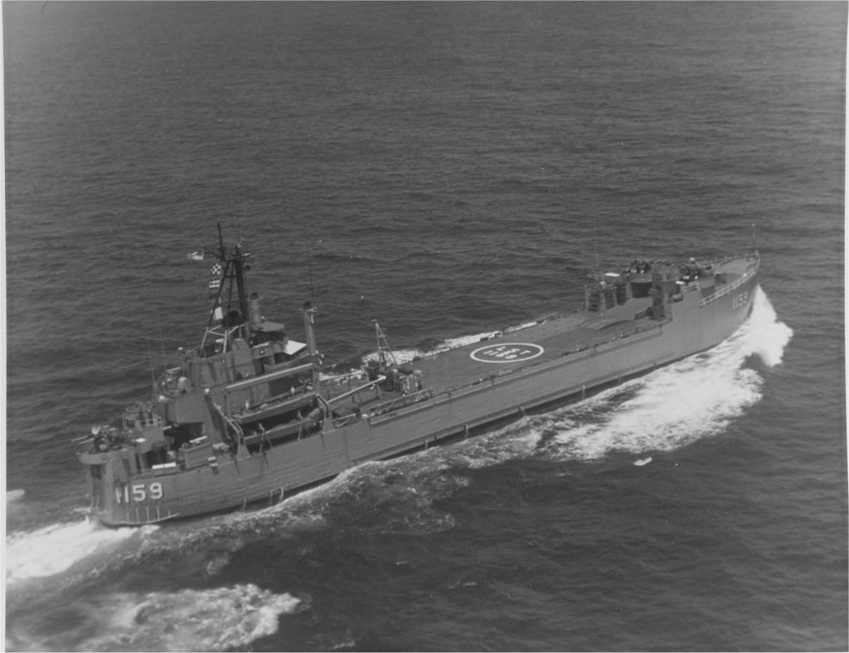 159k | USS Tom Green County (LST-1159) underway 5 September 1955, location unknown. US US Naval History and Heritage Command Photo # NH 67827. |