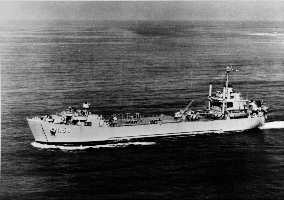 120k | USS Tom Green County (LST-1159) underway in 1965, location unknown. US Navy photo. |