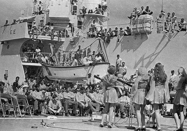 109k | Vietnam, Christmas 1970, USO Show featuring the Colorado Kappa Pickers from Colorado State University aboard USS Tom Green County (LST-1159).