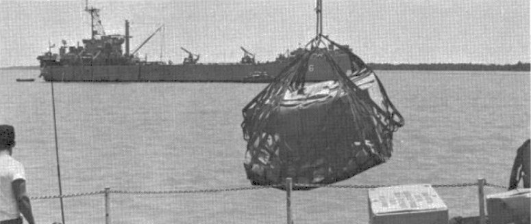 289k | USS Washtenaw County (MSS-2) underway in Haiphong harbor, North Vietnam in June 1973. By running the channel to Haiphong Washtenaw County verified that all US mines in the shipping channel to Haiphong had been cleared.